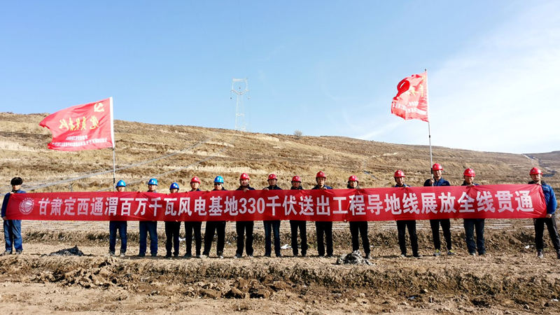 11月29日下午,经过四个多月的努力,通渭百万千瓦风电基地330千伏送出工程全线贯通。