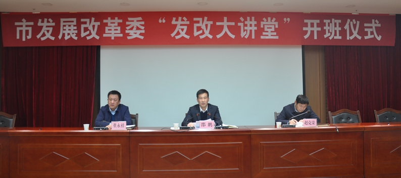为推进学习型机关、学习型党组织建设,进一步提升干部队伍整体素质和水平,增强干部职工研究和谋划工作的本领,切实提高履职能力,11月12日,市发展改革委举行“发改大讲堂”开班仪式,委党组书记、主任邵鹏同志主持,全体干部职工参加开班仪式。