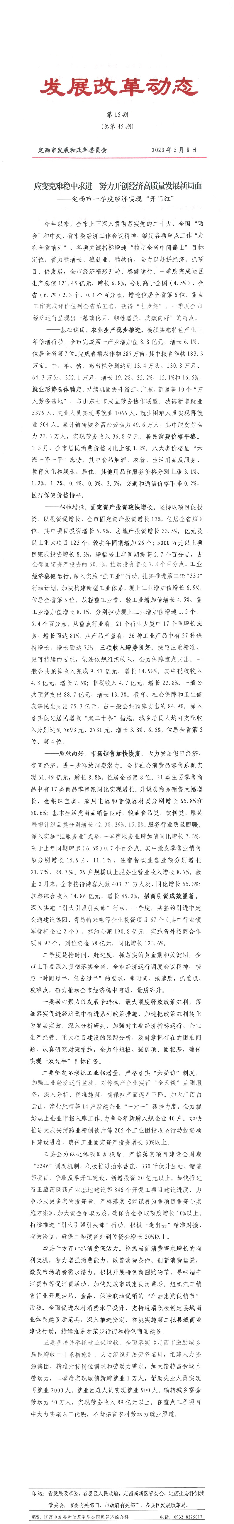(总第45期)第15期 应变克难稳中求进 努力开创经济高质量发展新局面