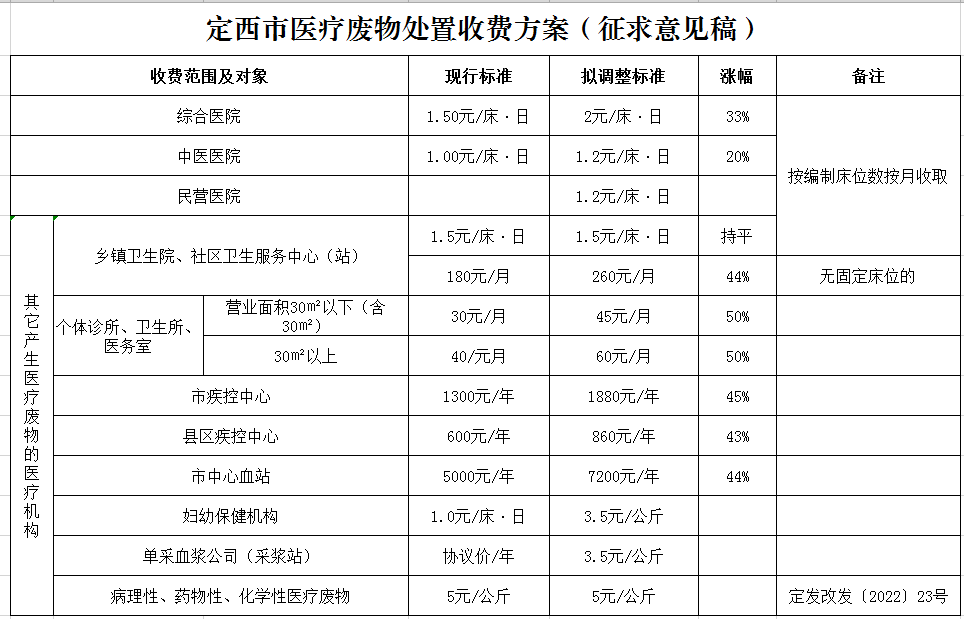 附件:《定西市医疗废物处置收费方案(征求意见稿)》